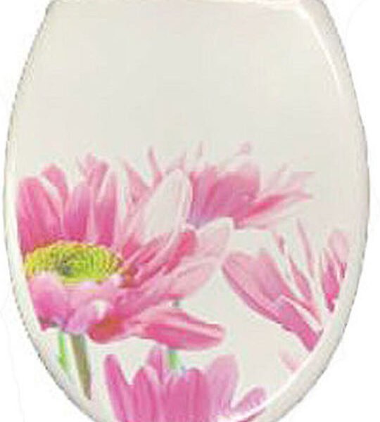 Καπάκι Λεκάνης 46x36cm Πλαστικό Λευκό με Ροζ Λουλούδια -SP16669