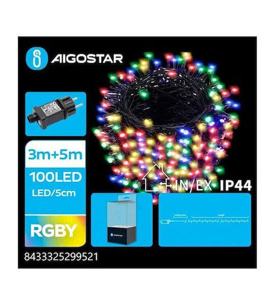 100 Λαμπάκια LED 5μ.και 3μ. 4 Χρώματα RGBY σε Σειρά με 8 Προγράμματα Aigostar 29952 – Aigostar