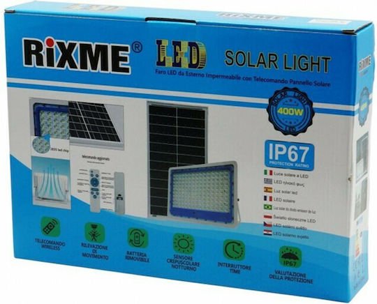 Rixme Στεγανός Ηλιακός Προβολέας LED 400W Ψυχρό Λευκό 6500K με Τηλεχειριστήριο IP66 101138