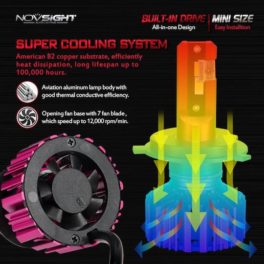 NovSight Λάμπες Αυτοκινήτου H4 LED 6500K Ψυχρό Λευκό 50W 2τμχ 48879946