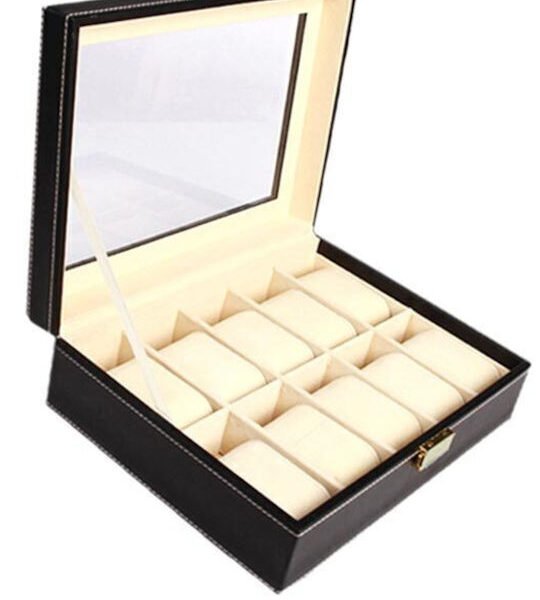 Θήκη με διάφανο καπάκι για 10 ρολόγια σε Μαύρο χρώμα AT0010635