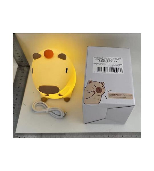 Children’s Night Light, Flippy, Silicone, Touch Sensor, Capybara Design, Warm Light, Eye Protection, USB Charging, Built-in 800mAh Battery Capacity, 10.8x9x12.8 cm, White