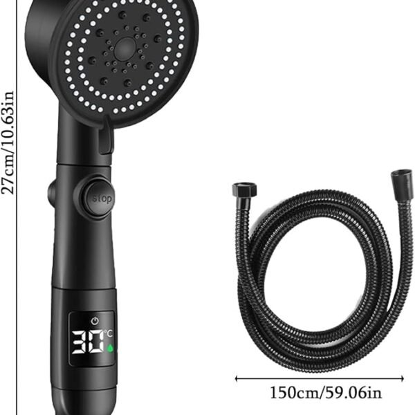 Έξυπνο Τηλέφωνο Ντουζ με Ψηφιακή Ένδειξη Θερμοκρασίας, 5 Λειτουργίες, Βάση & Σπιράλ
