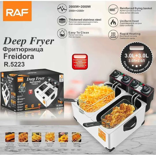 Raf Επαγγελματική Φριτέζα 2000W με Αποσπώμενους Κάδους Χωρητικότητας 3Lt+3Lt Ασημί R.5223