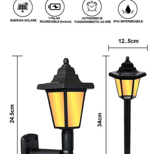 Αδιάβροχο Ηλιακό φωτιστικό φαναράκι με εφέ φλόγας Arrango AT76511 Μαύρο