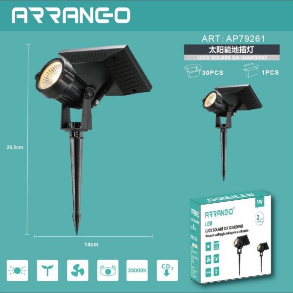 Αδιάβροχος Ηλιακός Προβολέας Κήπου LED 5W Ψυχρού Λευκού IP65 Arrango AP79261