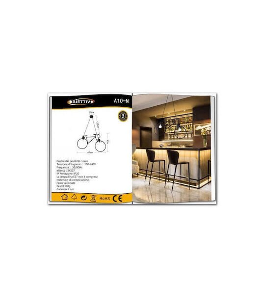 Universo Κρεμαστό Φωτιστικό Δίφωτο για Ντουί E27 Μαύρο A10-N