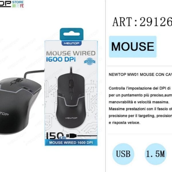 Newtop MW01 Ενσύρματο Ποντίκι 1600DPI Μαύρο