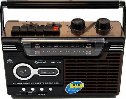 Φορητό Ηχοσύστημα YG-335U με USB / Κασετόφωνο / Ραδιόφωνο σε Μαύρο Χρώμα