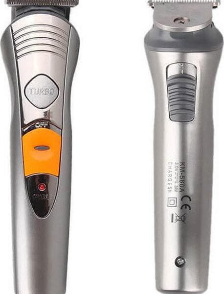 Kemei Επαγγελματικό Σετ Επαναφορτιζόμενης Κουρευτικής Μηχανής Ασημί KM-580A