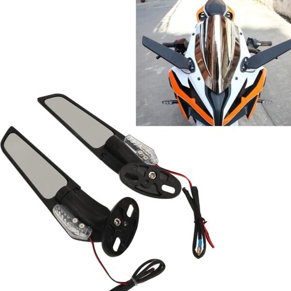 Σετ 2τμχ Μεταλλικοί Περιστρεφόμενοι Καθρέφτες Μοτοσικλέτας Με LED Φως
