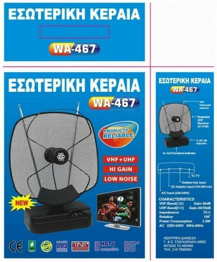 Uhf Vhf Εσωτερική Κεραία Τηλεόρασης (δεν απαιτεί τροφοδοσία) Σύνδεση με Ομοαξονικό (Coaxial) Καλώδιο AH-199 54133821