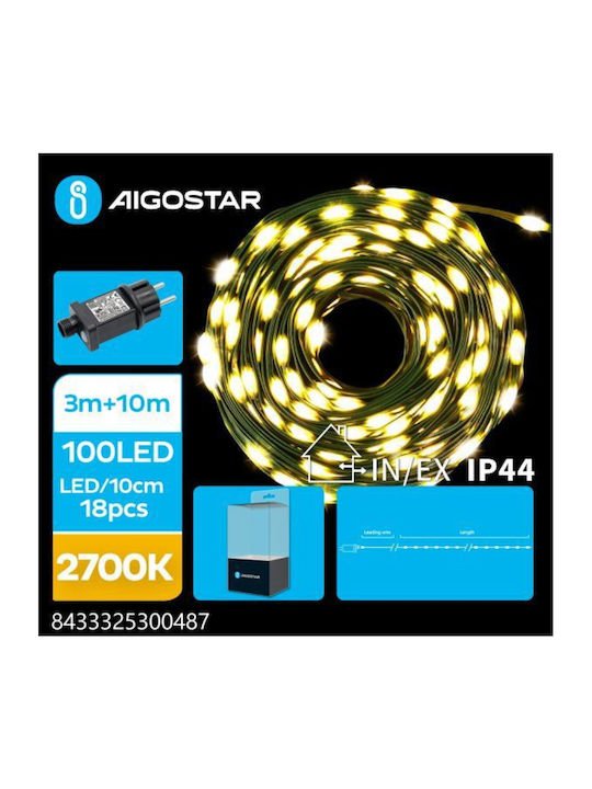 100 Χριστουγεννιάτικα Λαμπάκια LED 13m 220V σε Σειρά με 8 Λειτουργίες σε Θερμό Λευκό Φωτισμό 2700K Aigostar- 300487