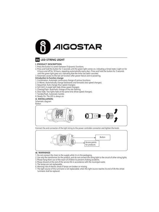 - Μήκος από την πρίζα μέχρι το πρώτο λαμπάκι: 3m