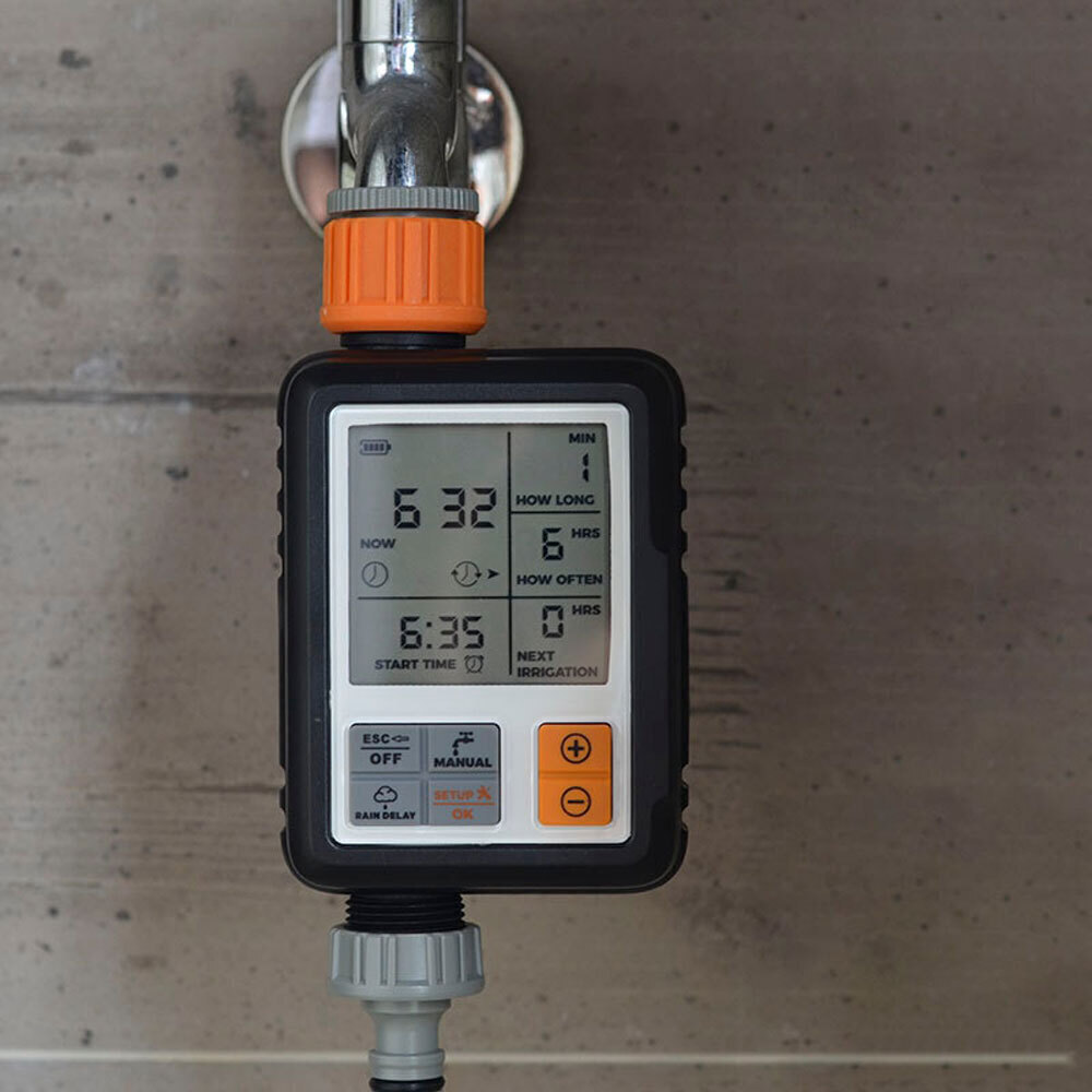 Τους καλοκαιρινούς μήνες, τα φυτά στον κήπο και το μπαλκόνι μας χρειάζονται πιο συχνά νερό. Το αυτόματο πότισμα είναι η λύση! Ο προγραμματιστής ποτίσματος με μπαταρία εξασφαλίζει το σωστό πότισμα των φυτών σας όταν βρίσκεστε μακριά ή δεν θέλετε να ανησυχείτε για αυτό. Αυτός προγραμματιστής ποτίσματος λειτουργεί με αλκαλικές μπαταρίες που μπορούν να διαρκέσουν έως και δύο χρόνια (καλό είναι να τις αλλάζετε κάθε εποχή) και συνδέεται εύκολα απευθείας στη βρύση. Με τον ίδιο προγραμματιστή, μπορείτε να ποτίζετε διαφορετικούς χώρους του κήπου σας ξεχωριστά, όπως το γκαζόν ή τα λουλούδια στη βεράντα.