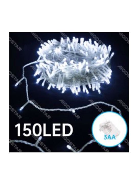 150 Χριστουγεννιάτικα Λαμπάκια LED 15μ Μπαταρίας IP44 σε Σειρά με Διάφανο Καλώδιο σε Ψυχρό Λευκό Φωτισμό Aigostar- 112083