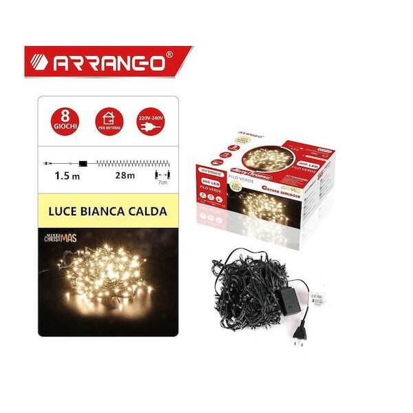 Χριστουγεννιάτικα λαμπάκια σειρά μήκους 5m, με 20 λαμπάκια led. Έχουν μαύρο καλώδιο και εκπέμπουν θερμό λευκό φως, το οποίο αποδίδεται στην κλίμακα Kelvin με τιμές από 2400Κ έως 3800Κ. Οι τόνοι του θερμού λευκού είναι πιο κίτρινοι σε σχέση με το φυσικό φως. Σας επιτρέπουν να επιλέξετε ανάμεσα σε διάφορα προγράμματα εναλλαγής φωτισμού, ανάλογα με τη διάθεση σας. Λειτουργούν με ηλιακή ενέργεια.