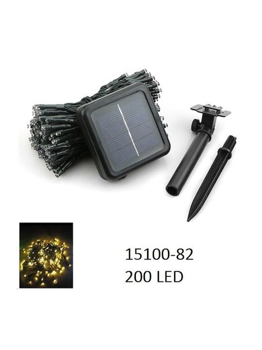 200 Χριστουγεννιάτικα Λαμπάκια LED Θερμό Λευκό 20μ Ηλιακά σε Σειρά με Πράσινο Καλώδιο 15100-82 81006JKG50WW