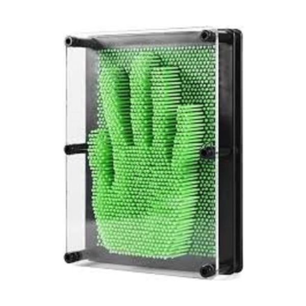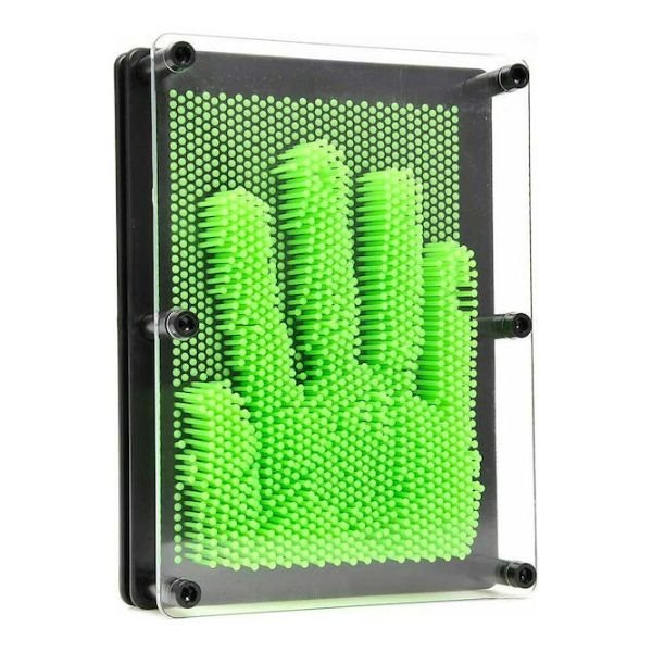 Πιέζοντας το χέρι, το πρόσωπο ή οποιοδήποτε αντικείμενο στην επιφάνειά του, δημιουργείται ένα 3D αποτύπωμα που διατηρείται χάρη στις μεταλλικές καρφίτσες. Μπορείς επίσης να σχηματίσεις ονόματα, σχέδια ή δημιουργικά μοτίβα, δίνοντας προσωπικό χαρακτήρα σε κάθε δημιουργία.