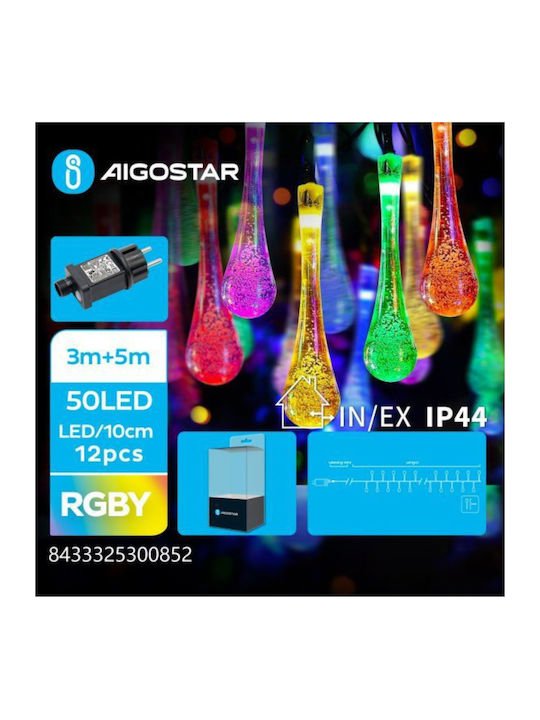 5m Χριστουγεννιάτικη Γιρλάντα με 100 LED Σταλακτίτες Πολύχρωμου RGB Φωτισμού – Εσωτερικού & Εξωτερικού Χώρου – AIGOSTAR- 300852