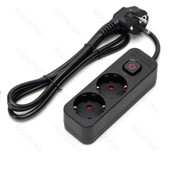 Aigostar Πολύπριζα Γερμανικού Τύπου 2 Θέσεων Με Διακόπτη Ασφαλείας Μήκος καλωδίου 1,5μ MRE 27654