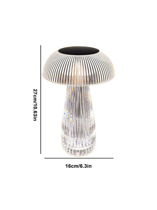 Διακοσμητικό φωτιστικό με κρυστάλλινο σχέδιο λευκού φωτισμού, θερμού, ψυχρού, φυσικού με επιφάνεια αφής on/off. Είναι εξοπλισμένο με επαναφορτιζόμενη μπαταρία που φορτίζει μέσω USB και έχει διάρκεια λειτουργίας 5 ώρες.