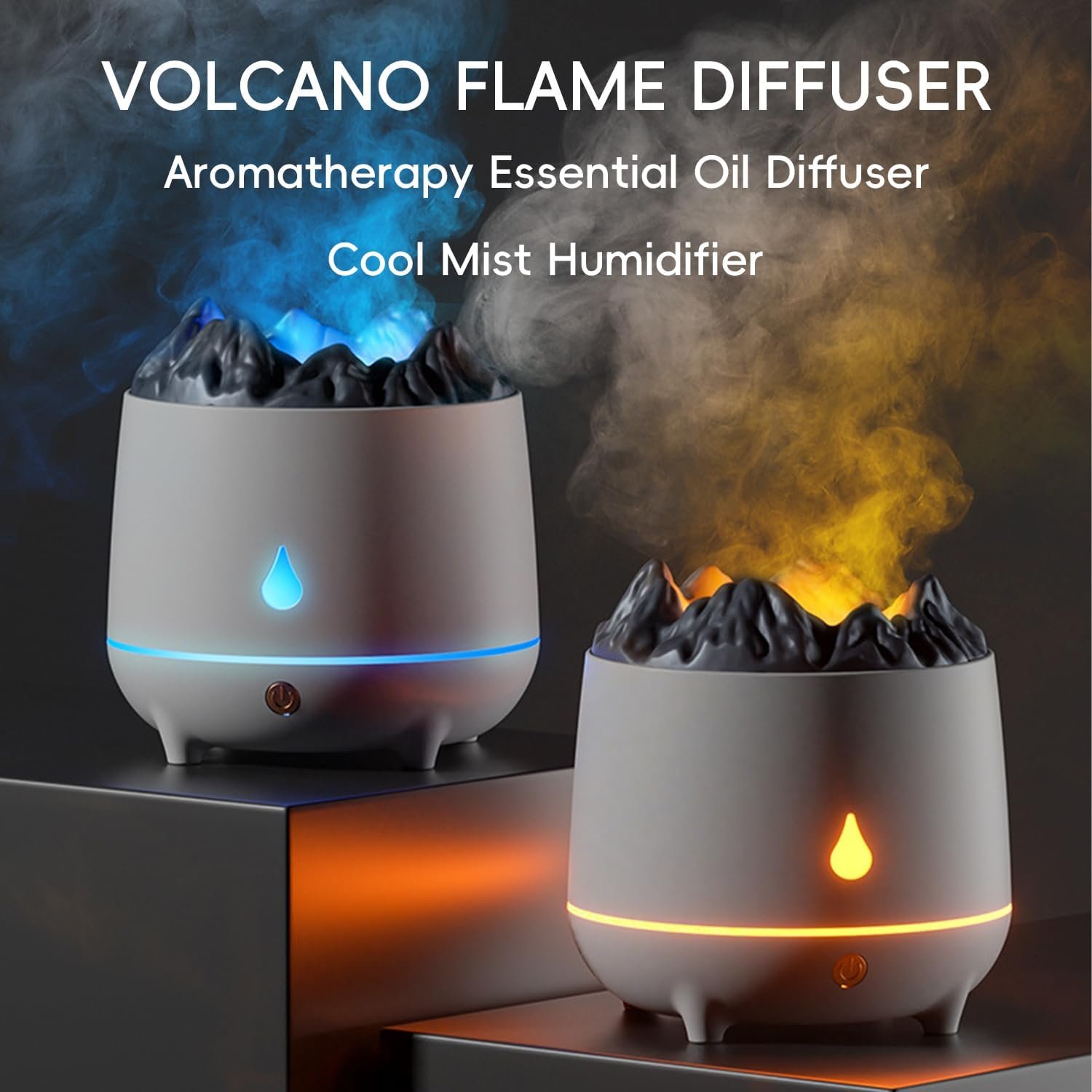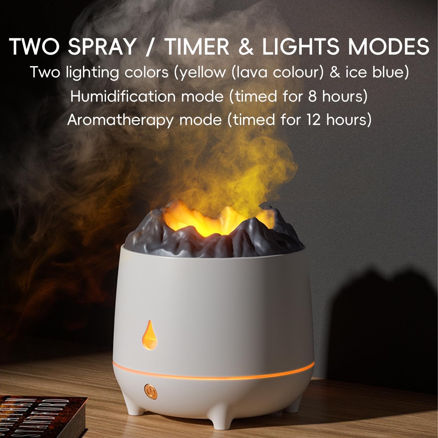 - 【Μοναδικό σχήμα ηφαιστείου και δύο φώτα περιβάλλοντος】- Η εμφάνιση έχει σχεδιαστεί για να μοιάζει με ηφαίστειο, σε συνδυασμό με προσομοιωμένα φώτα φλόγας για να κάνει αυτόν τον διαχύτη ηφαιστείου να φαίνεται πιο ρεαλιστικός. Τα κίτρινα (χρώμα λάβας) και τα μπλε φώτα του πάγου μπορούν να επιλεγούν ελεύθερα για να δημιουργήσουν μια άνετη ατμόσφαιρα. Φαίνεται πολύ ωραίο.