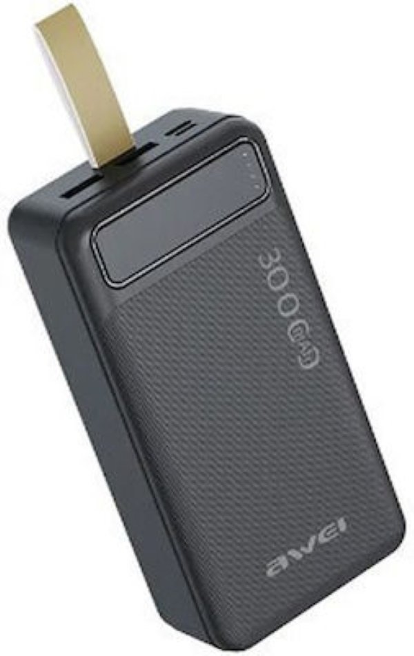 Awei P7K Power Bank 30000mAh με 2 Θύρες USB-A και Θύρα USB-C Μαύρο 42114454