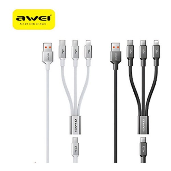 Το multi port καλώδιο της Awei αποτελεί μια πρακτική και ευέλικτη λύση φόρτισης για διαφορετικές συσκευές. Διαθέτει ακροδέκτες Type-C και Lightning, επιτρέποντάς σας να φορτίζετε τόσο Android όσο και Apple συσκευές με ένα μόνο καλώδιο.