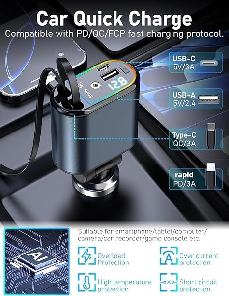 • IV. ΠΛΗΡΗΣ ΣΥΜΒΑΤΟΤΗΤΑ: Ο ανασυρόμενος φορτιστής αυτοκινήτου LWW 4 σε 1 καλύπτει τις καθημερινές ανάγκες τόσο των χρηστών iOS όσο και των χρηστών Android. Προσφέροντας ευέλικτη, γρήγορη φόρτιση, που περιέχει ανασυρόμενα καλώδια USB C και USB L, καθώς και οπές για USB C και USB A, αυτός ο φορτιστής είναι ιδανικός για όποιον διαθέτει πολλαπλές συσκευές, είτε διακοσμείτε το φορτηγό σας είτε ψάχνετε το τέλειο δώρο αυτοκινήτου για έναν λάτρη της τεχνολογίας.