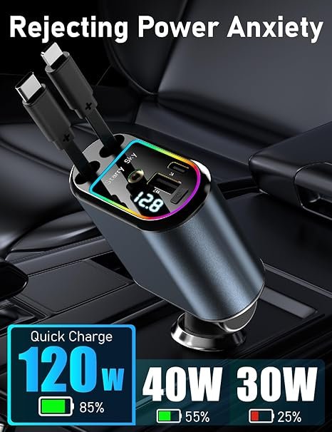 Car Charger, Max 120W 4 in 1 Car