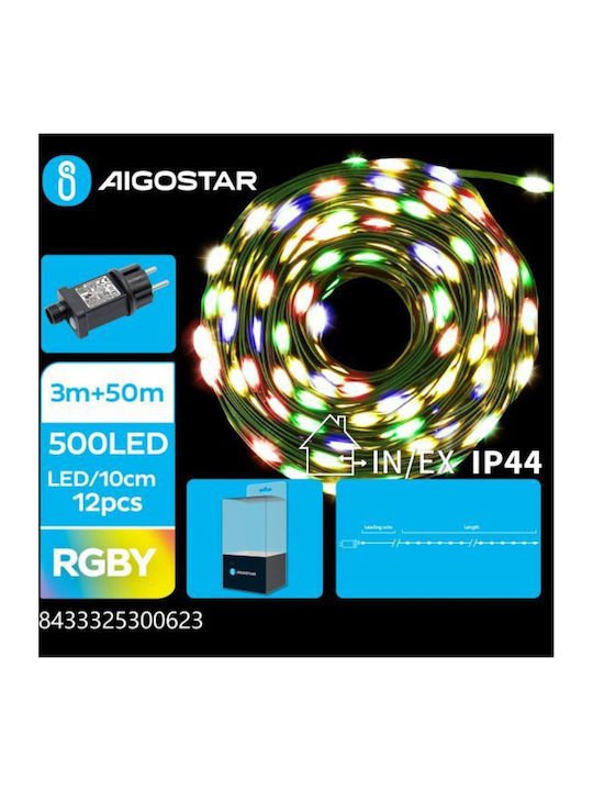 Χριστουγεννιάτικα Λαμπάκια για Εσωτερικό και Εξωτερικό Χώρο 500LED 3m+50m Πολύχρωμου Φωτισμού Aigostar- 300623