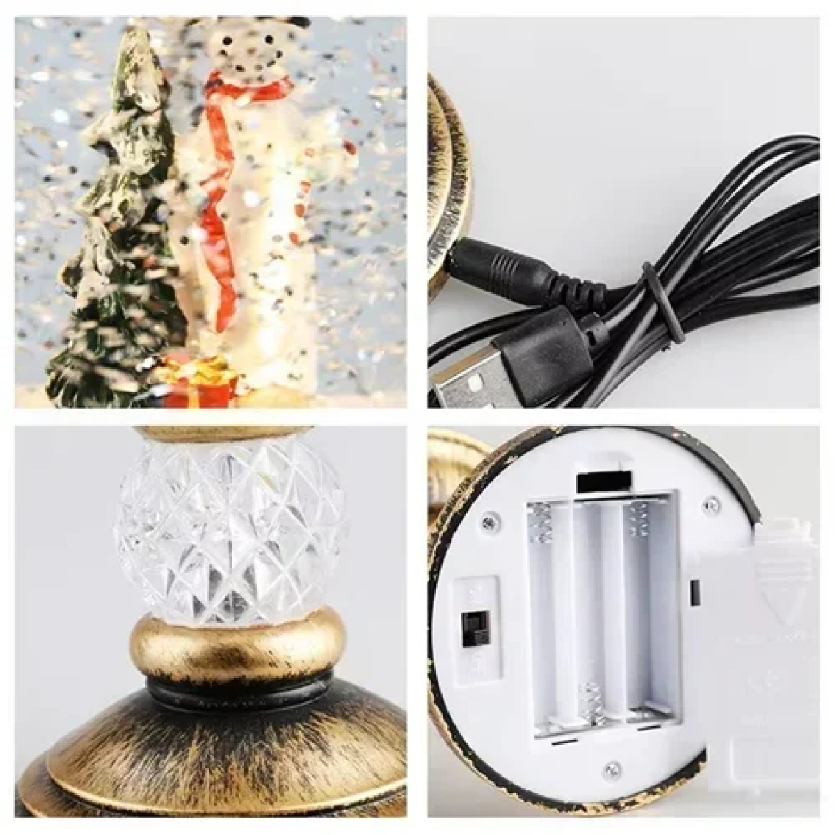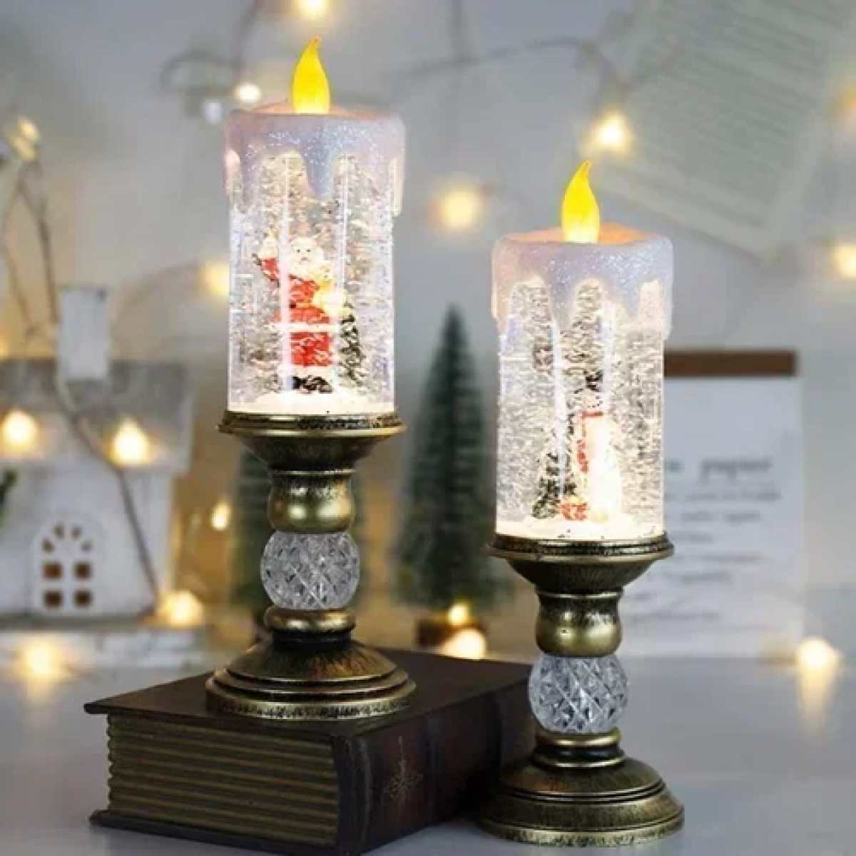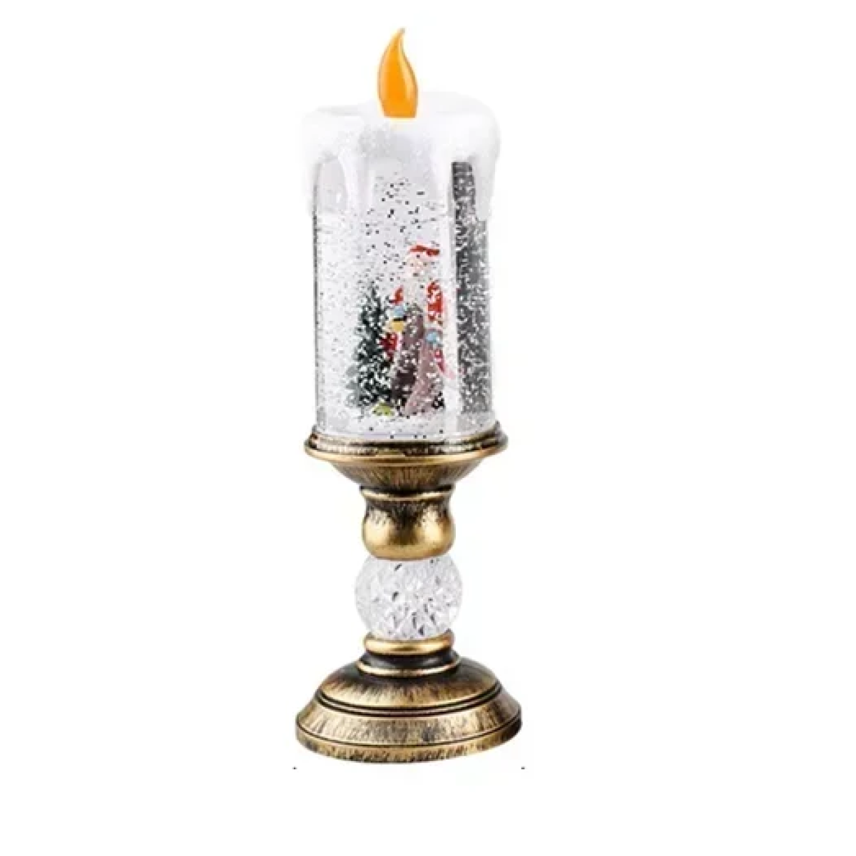 Χριστουγεννιάτικο διακοσμητικό κεράκι με χιόνι και φωτισμό – χρυσό