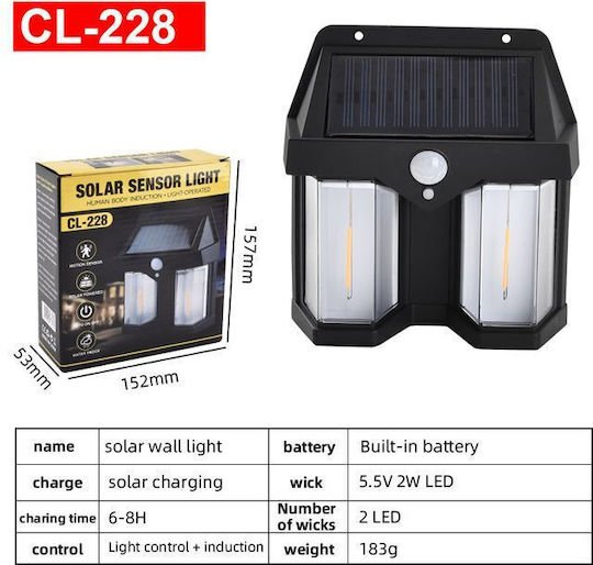 Cl-228 Επιτοίχιο Ηλιακό Φωτιστικό 2W 1200lm Θερμό Λευκό με Αισθητήρα Κίνησης και Φωτοκύτταρο IP65 13.8x15x4.5εκ. 0102121
