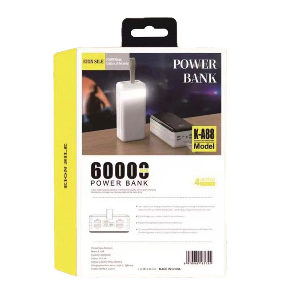 EION K-A88 Power Bank 60000mAh με 4 Θύρες USB-C Μαύρο