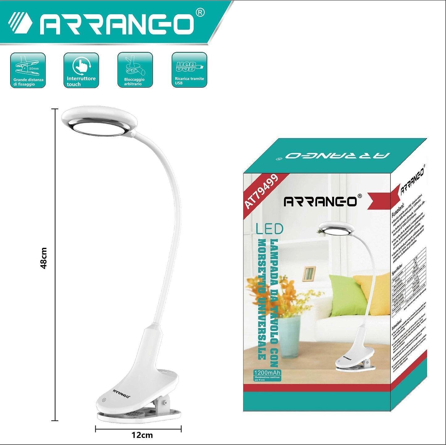Επαναφορτιζόμενη Εύκαμπτη λάμπα με μανταλάκι στήριξης με μπαταρία 1200mAh USB Arrango AT79499 Λευκό