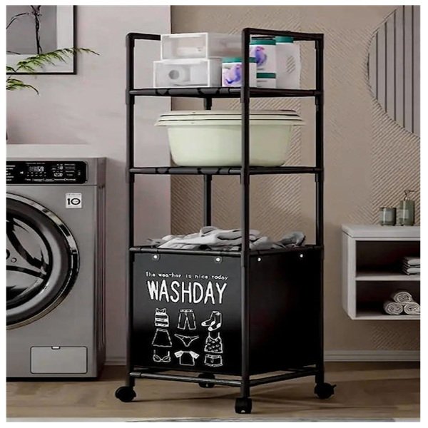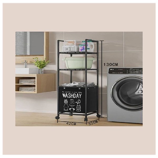 Η τροχήλατη ραφιέρα μπάνιου YH6905-3 με 2 ράφια και καλάθι απλύτων προσφέρει πρακτική αποθήκευση για μικρούς χώρους. Διαθέτει ρόδες για εύκολη μετακίνηση και μοντέρνο σχεδιασμό σε μαύρο χρώμα.