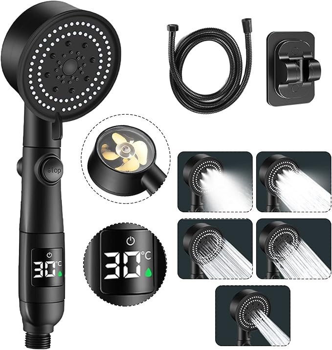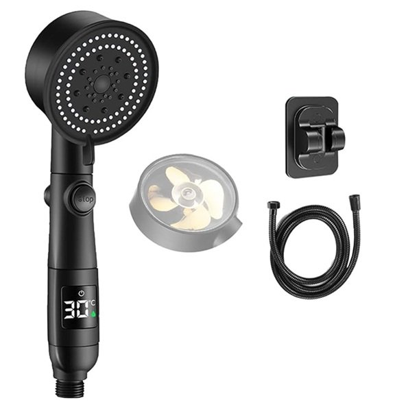 Έξυπνο Τηλέφωνο Ντουζ με Ψηφιακή Ένδειξη Θερμοκρασίας, 5 Λειτουργίες, Βάση & Σπιράλ
