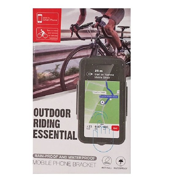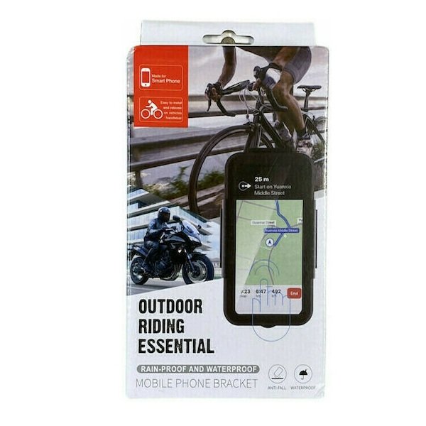 Αδιάβροχη βάση κινητού ποδηλάτου με θήκη και περιστροφή 360° για εύκολη χρήση του κινητού κατά την ποδηλασία. Διαθέτει διάφανο παράθυρο αφής, ρυθμιζόμενο βραχίονα και EVA pads για απορρόφηση κραδασμών. Κατασκευή από ανθεκτικό ABS.