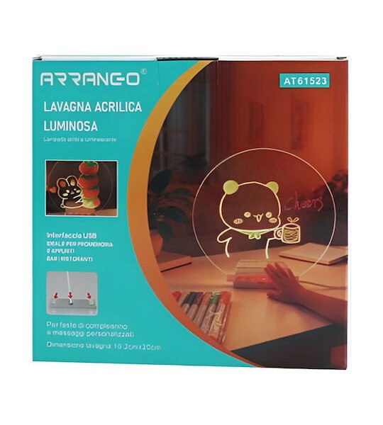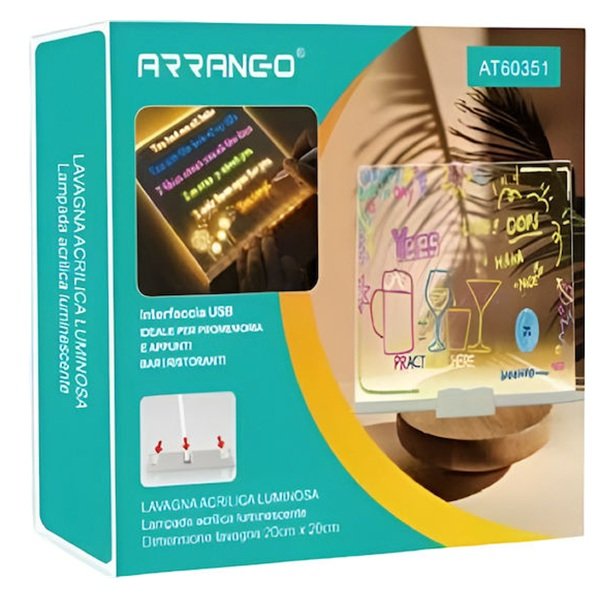 Φωτιζόμενος Ακρυλικός Πίνακας Γραφής Led Usb 20x20cm Arrango At60351