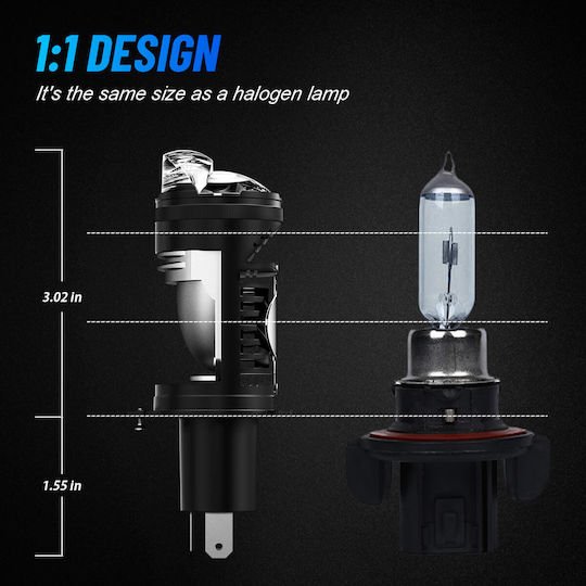 - Ιδανικός για οχήματα με περιορισμένο χώρο πίσω από το φανάρι, καθώς διαθέτει μέγεθος παρόμοιο με τον λαμπτήρα αλογόνου.