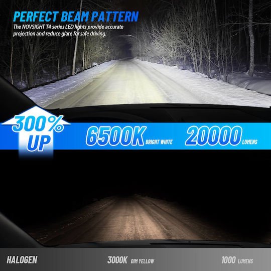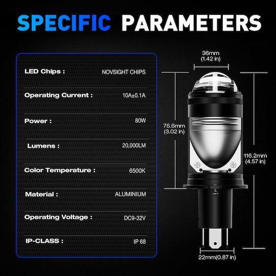 H4 LED με Προτζέκτορα 12-24V 80W 20000LM 6500K IP68 A500 T4 NOVSIGHT 2 X 40W