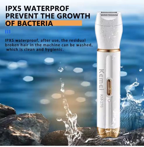 Η Kemei KM-276 είναι μια επαναφορτιζόμενη, πολυλειτουργική αποτριχωτική συσκευή 4 σε 1, κατάλληλη για την αποτρίχωση σε διάφορες περιοχές του σώματος, όπως πόδια, μασχάλες, μπικίνι, πρόσωπο και μύτη. Είναι κατάλληλη για χρήση σε στεγνό και υγρό δέρμα.