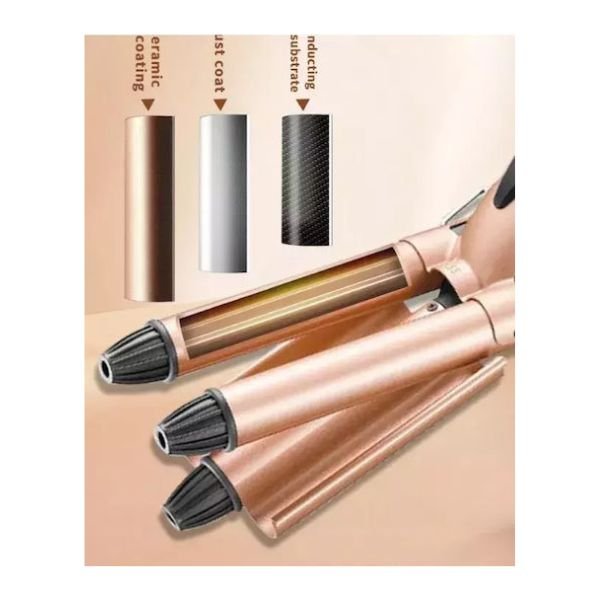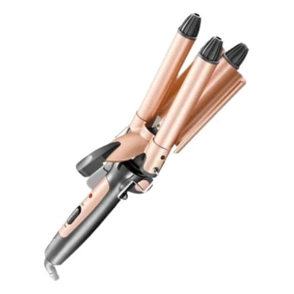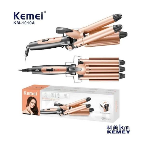 Τριπλό ψαλίδι μαλλιών Kemei με κεραμική επίστρωση και θερμοκρασία έως 200°C, ιδανικό για εύκολα και εντυπωσιακά κυματιστά μαλλιά.