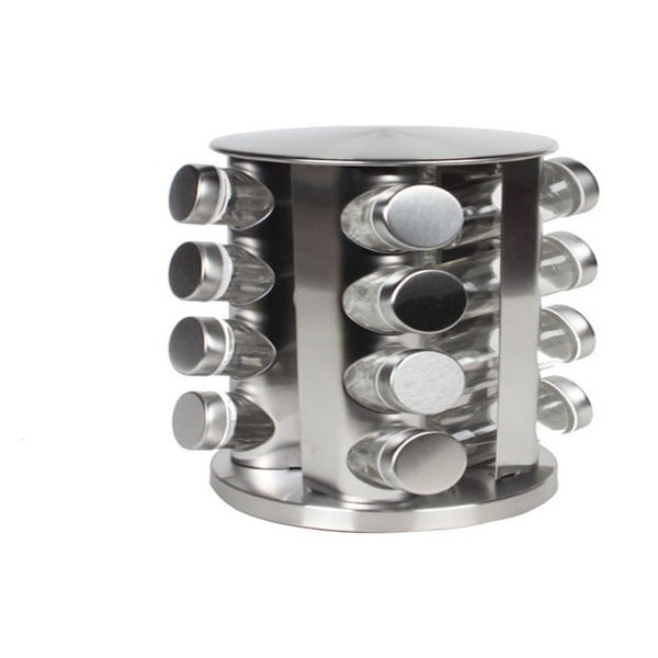 Keskor Θήκες Μπαχαρικών Γυάλινες σε Περιστρεφόμενη Βάση Ασημί 16τμχ 28415276