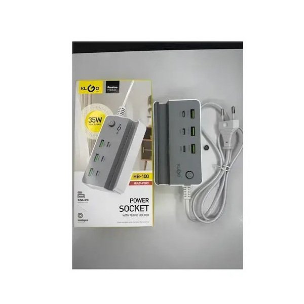 Πολύπριζο φόρτισης KLGO HB-100 Multi-Port 35W με ενσωματωμένη βάση κινητού, ιδανικό για ταυτόχρονη φόρτιση πολλών συσκευών σε έναν χώρο. Διαθέτει 6 θύρες (3 USB και 3 Type-C PD), προσφέροντας ευέλικτη και οργανωμένη τροφοδοσία για smartphones, tablets και άλλα ηλεκτρονικά.