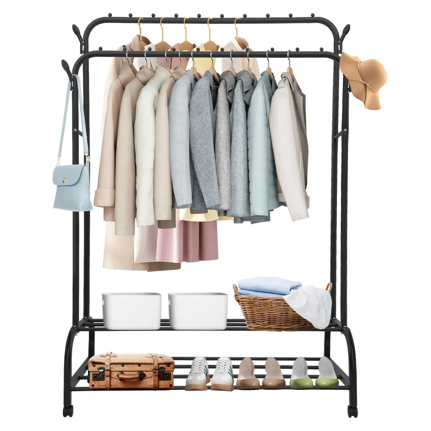 Κρεμάστρα Δαπέδου Τροχήλατη από Μέταλλο σε Μαύρο Χρώμα 150x57x110cm –