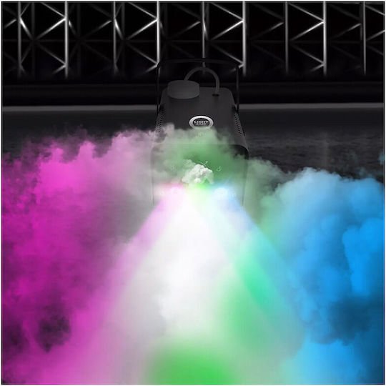 Αυτή η μηχανή καπνού διαθέτει οκτώ LED που λειτουργούν σε RGB (Κόκκινο, Πράσινο, Μπλε) λειτουργία, προσφέροντας μια ευρεία γκάμα χρωμάτων για να ενισχύσουν τα οπτικά εφέ. Ένα σημαντικό χαρακτηριστικό είναι το ασύρματο τηλεχειριστήριο, που την καθιστά εξαιρετικά φιλική προς τον χρήστη, καθώς επιτρέπει στους DJs να χειρίζονται τη συσκευή από απόσταση.