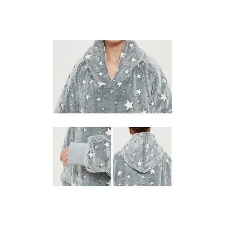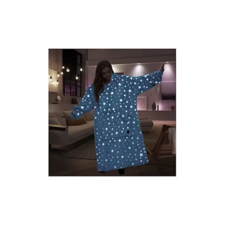 Λούτρινη βελούδινη κουβέρτα με μανίκια και κουκούλα (70×90) cm Huggle Plush velvet blanket with sleeves and hoodie Free Size Customized Glow in the Dark Starry Night Blue Gray