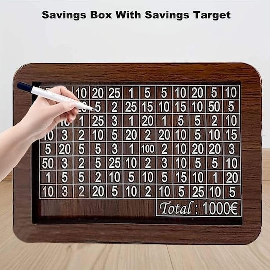 Περιλαμβάνεται ειδικό στυλό για να σβήνετε τα ποσά που αποταμιεύετε.